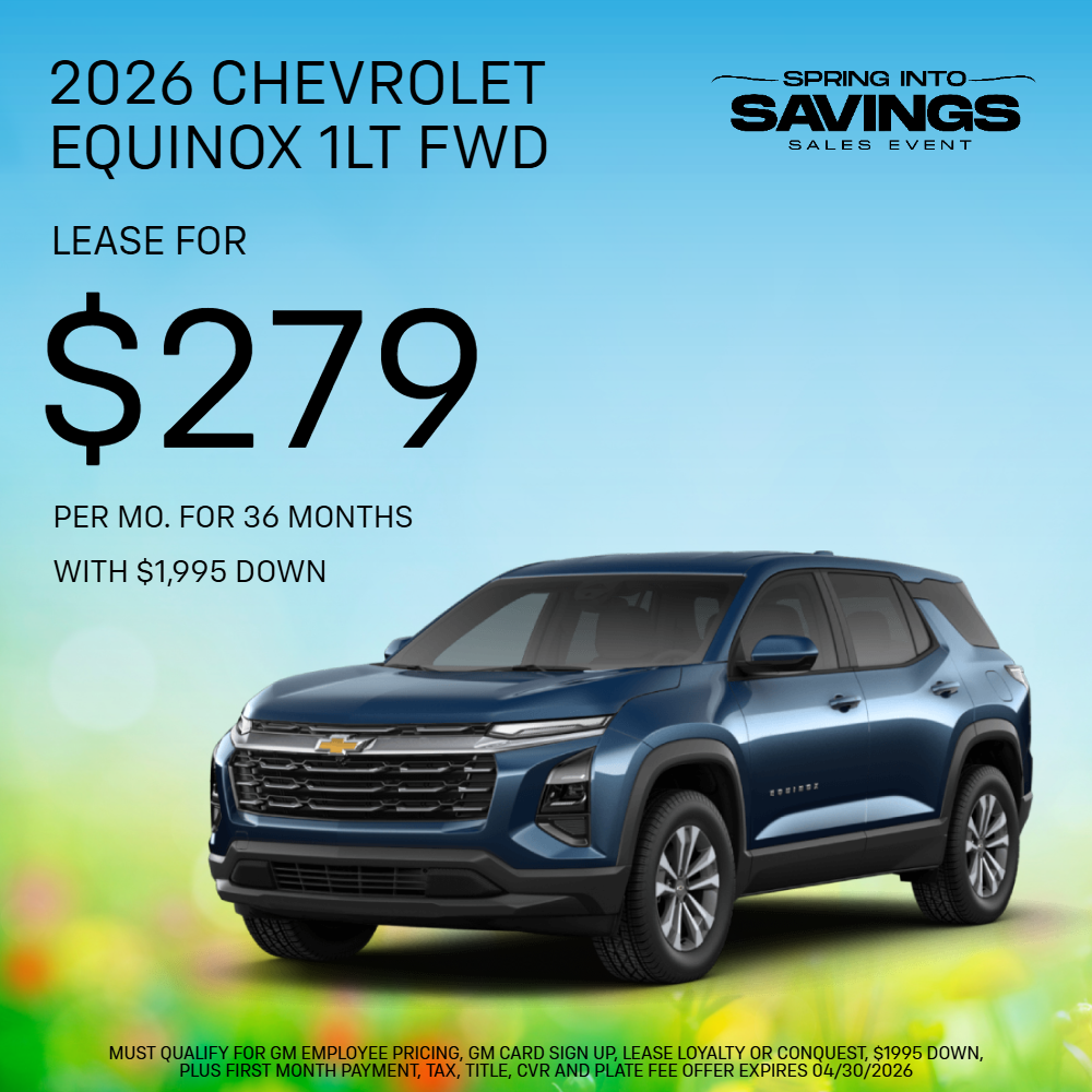 MUST QUALIFY FOR GM EMPLOYEE PRICING, GM CARD SIGN UP, LEASE LOYALTY OR CONQUEST, $1995 DOWN, PLUS FIRST MONTH PAYMENT, TAX, TITLE, CVR AND PLATE FEE OFFER EXPIRES 04/30/2026. STOCK# 26W2061