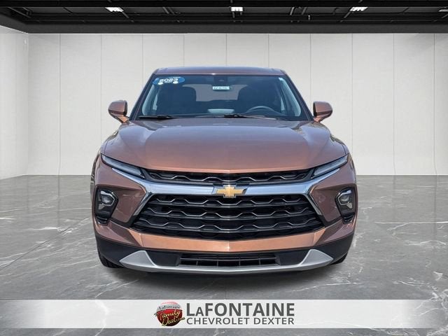 We use state-of-the-art software to price our vehicles to be the most competitive in the market. If you have found a better value, let us know about it. We would love the opportunity to keep giving the best values in the market. Contact our Sales Department at (734) 447-3014 with your questions and to set up an appointment to experience the Family Deal at LaFontaine Chevrolet Dexter, where it's not just what you get - it's how you feel! NOTE: All Equipment Listed May Not Be Available. Check out all of the great equipment on the 2023 Chevrolet Blazer Driver Confidence Package (Lane Change Alert w/Side Blind Zone Alert, Rear Cross Traffic Alert, and Rear Park Assist w/Audible Warning), Interior Protection Package (Premium All-Weather Cargo Mat (LPO) and Premium All-Weather Floor Mats), Preferred Equipment Group 2LT, Blazer LT, 4D Sport Utility, 2.0L Turbocharged, 9-Speed Automatic with Overdrive, AWD, Bronze Metallic, Jet Blk Premium Clth Cloth, 4-Wheel Disc Brakes, ABS brakes, Apple CarPlay/Android Auto, Brake assist, Child-Seat-Sensing Airbag, Compass, Dual front impact airbags, Dual front side impact airbags, Electronic Stability Control, Emergency communication system: OnStar and Chevrolet connected services capable, Occupant sensing airbag, Overhead airbag, Power door mirrors, Power Driver Lumbar Control, Premium audio system: Chevrolet Infotainment 3 Plus, Security system, 170 Amp Alternator, 3.47 Final Drive Axle Ratio, 4-Way Manual Front Passenger Seat Adjuster, 6 Speakers, 6-Speaker Audio System Feature, 8-Way Power Driver Seat Adjuster, Air Conditioning, Alloy wheels, AM/FM radio: SiriusXM with 360L, Auto High-beam Headlights, Automatic temperature control, Bumpers: body-color, Delay-off headlights, Driver door bin, Driver vanity mirror, Four wheel independent suspension, Front anti-roll bar, Front Bucket Seats, Front Center Armrest, Front dual zone A/C, Front reading lights, Fully automatic headlights, Heated door mirrors, Illuminated entry, Knee airbag, Leather Shift Knob, Low tire pressure warning, Not Equipped w/Rear Park Assist, Outside temperature display, Overhead console, Panic alarm, Passenger door bin, Passenger vanity mirror, Power driver seat, Power steering, Power windows, Premium Cloth Seat Trim, Radio data system, Radio: Chevrolet Infotainment 3 Plus System, Rear anti-roll bar, Rear reading lights, Rear seat center armrest, Rear window defroster, Rear window wiper, Remote keyless entry, Ride & Handling Suspension, SiriusXM w/360L, Speed control, Speed-sensing steering, Split folding rear seat, Spoiler, Steering wheel mounted audio controls, Tachometer, Telescoping steering wheel, Tilt steering wheel, Traction control, Trip computer, Variably intermittent wipers, Voltmeter, and Wheels: 18 Grazen Metallic Aluminum.